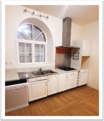 Cuisine – salle à manger (14 m²) équipée : cuisinière – four, hotte, lave-vaisselle