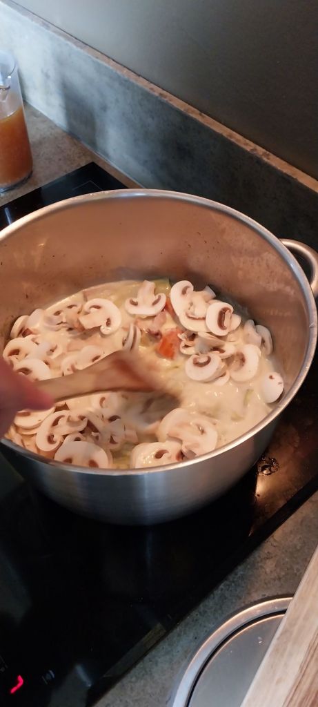 Ajouter les champignons vers la fin pour qu’ils restent un peu croquants